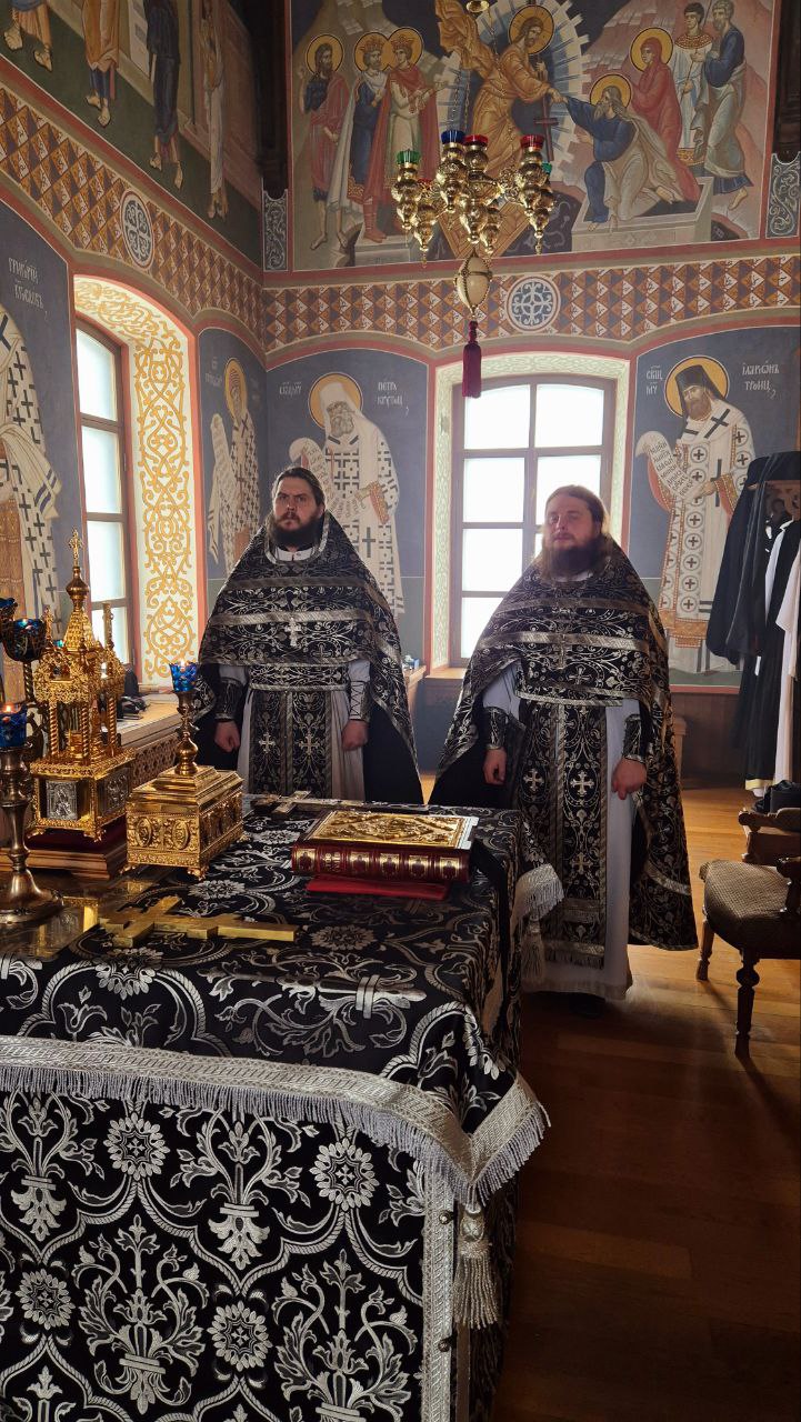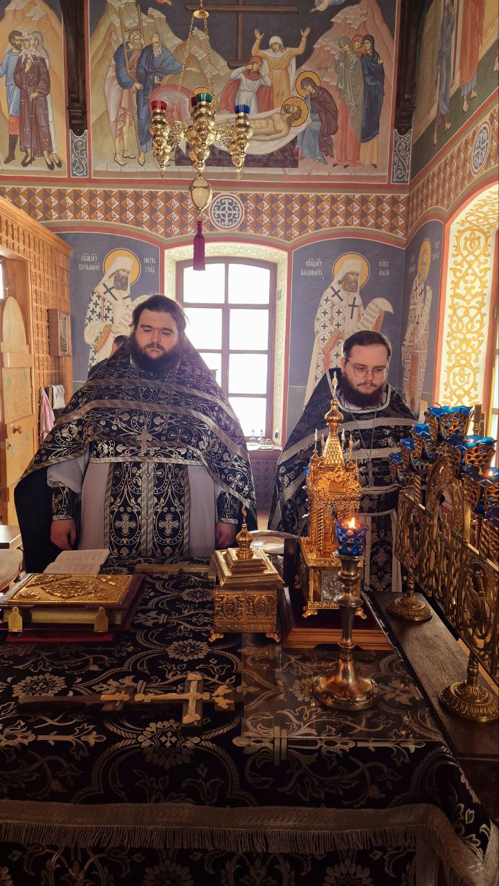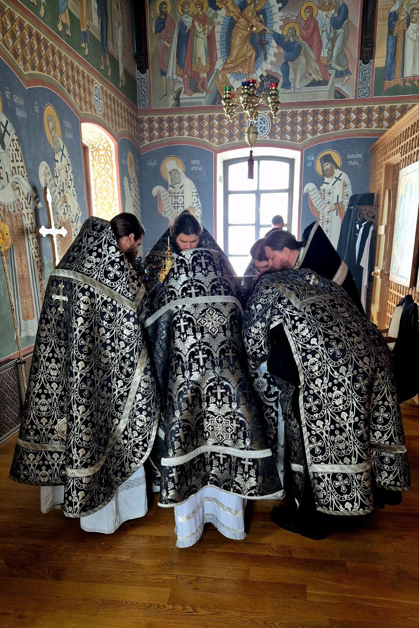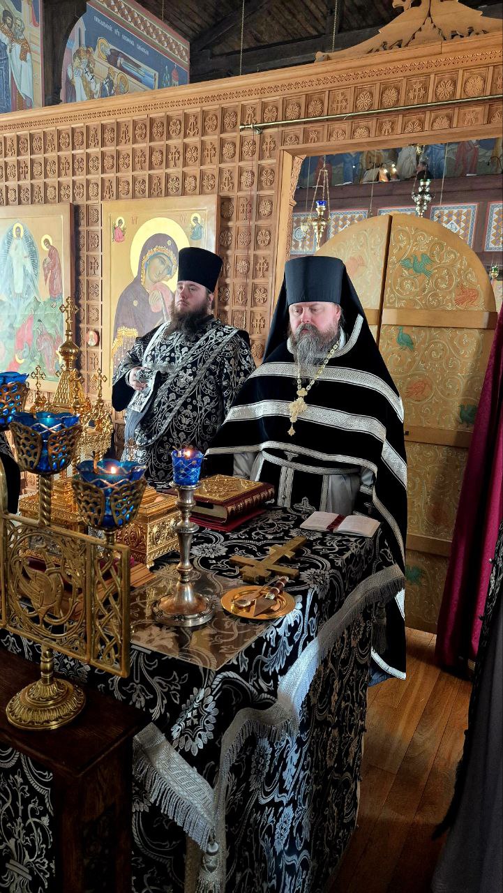 Первая Литургия Преждеосвященных Даров в 2026 году была совершена братией в храме Царственных Страстотерпцев Гуслицкого Спасо-Преображенского мужского монастыря.